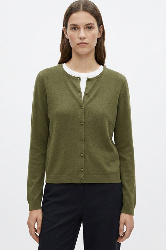 Cardigan en tricot côtelé kaki avec boutons en nacre