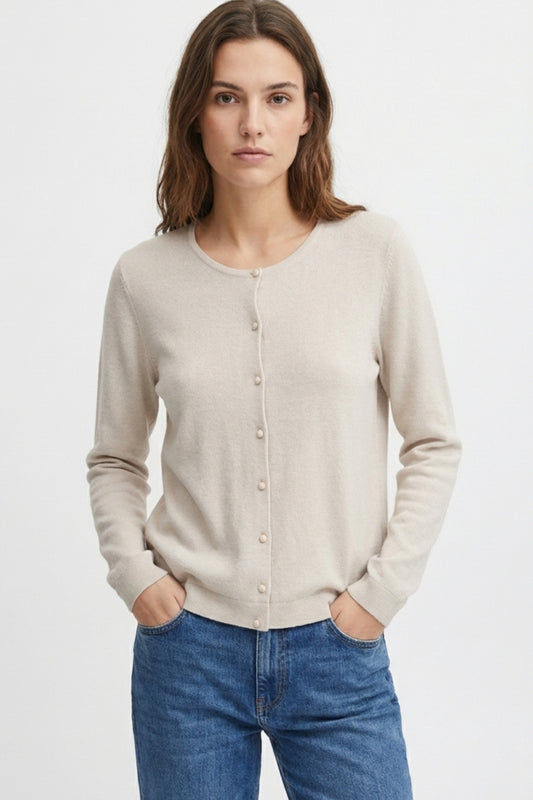 Cardigan en tricot côtelé camel avec boutons en nacre