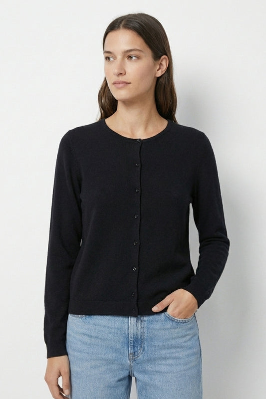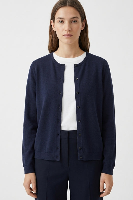 Cardigan en tricot côtelé marine avec boutons en nacre