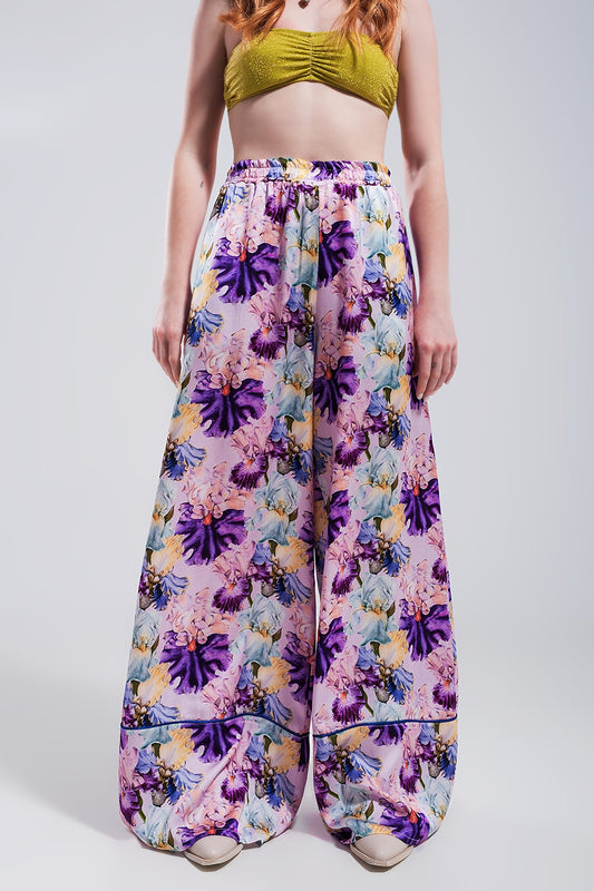 Pantalon pourpre large à taille haute en satin à imprimé fleuriPrix habituel €69,90Prix habituelPrix unitaire / par-