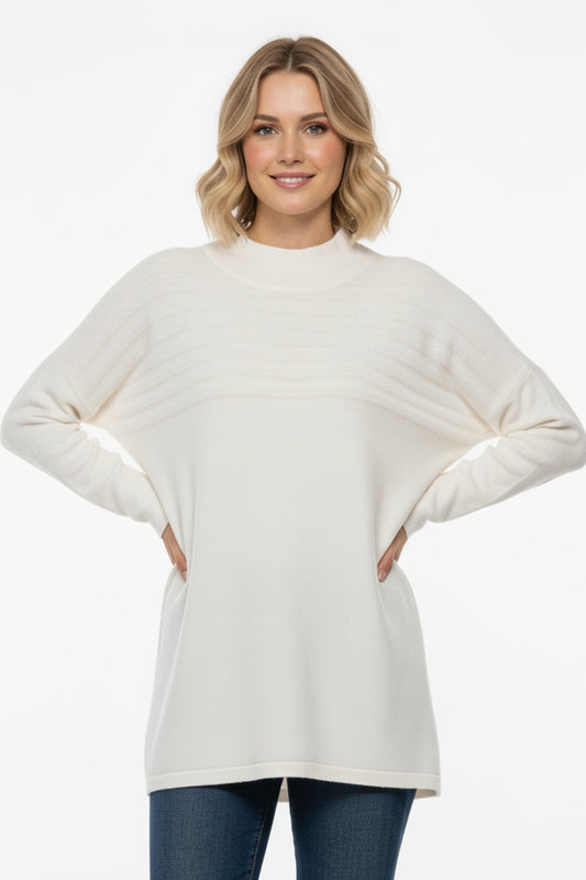 Pull à col roulé blanc avec boutons dorés sur la manchette