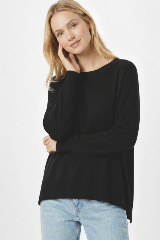 Pull noir à col en V en maille fine et texture linéaire subtile