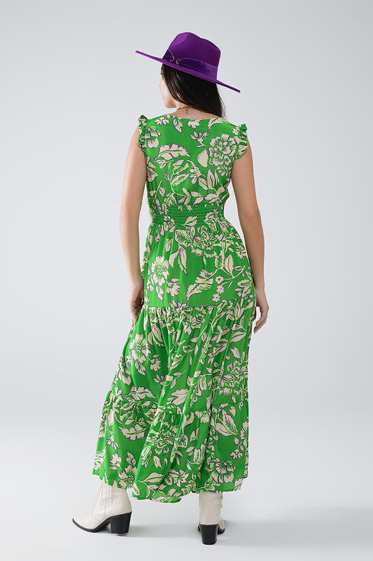 robe courte verte à imprimé fleuri boho avec détails en lurex