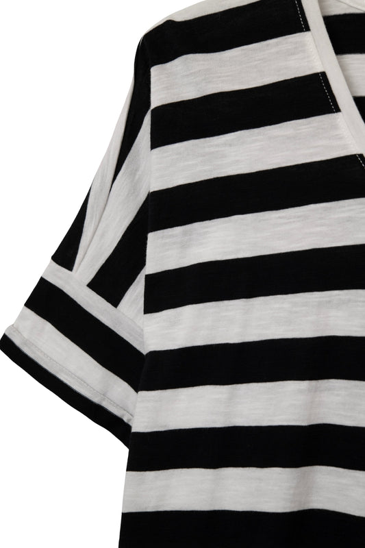 T-shirt à encolure bateau à rayures et manches 3/4 en beige