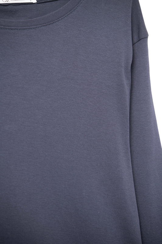 T-Shirt à manches longues bleu marine avec large col ras du cou