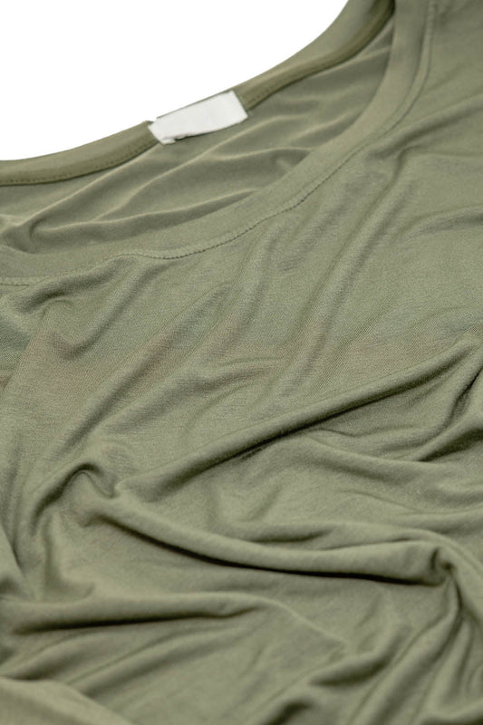 Boat neck Long sleeve t shirt in modal in Khaki color