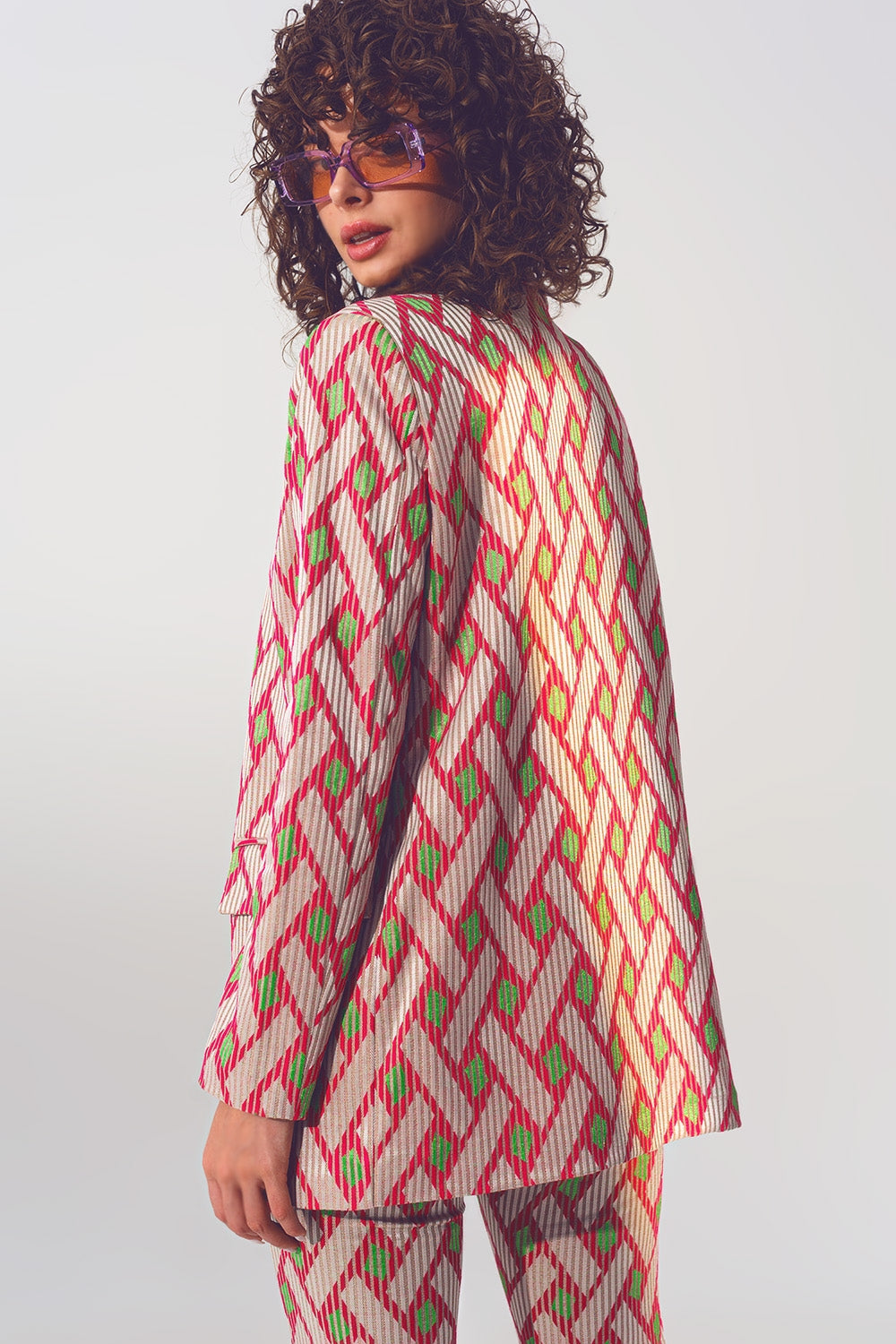 Veste de tailleur. Revers style châle. Manches: Manches longues. Imprimé: motif géométrique. Coupe: Ajustement standard. Style: Style sur mesure. Poches: Poches sur les côtés. Fermeture : Patte de boutonnage. détails du produit: Entièrement doublée.