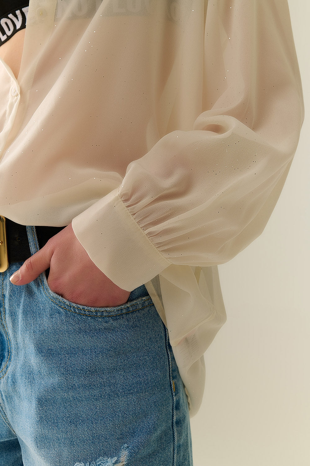 Blouse. Manches longues. Coupe: Coupe décontractée. détail: Ornements. Tissu: Mousseline de soie. Fermeture : Patte de boutonnage.