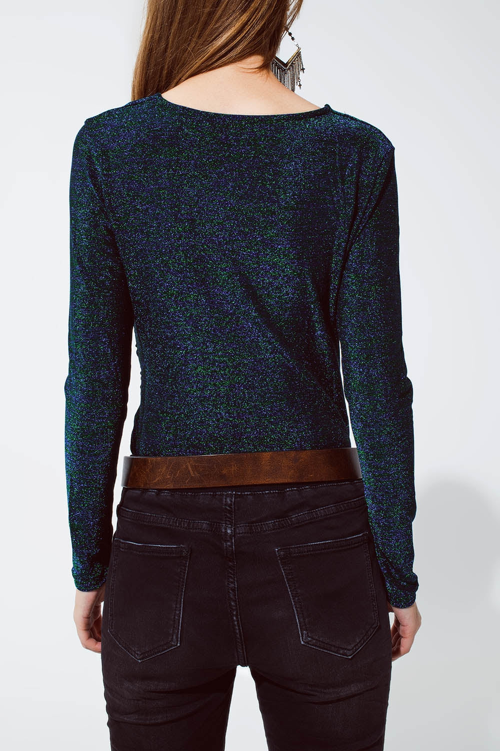 Body. Encolure Col V. Manches: Manches longues. Coupe: Coupe moulante. Style: Style de fête. détail: Finition métallique. Tissu: Lúrex.