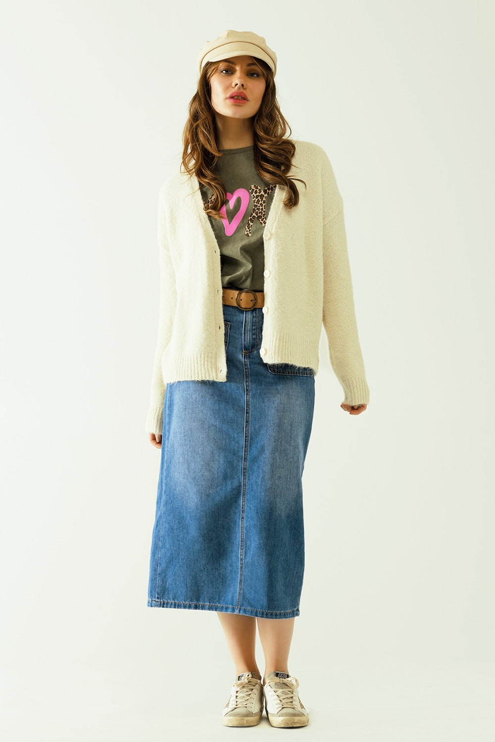 Cardigan à manches longues de couleur crème avec fermeture sur le devant par des boutons