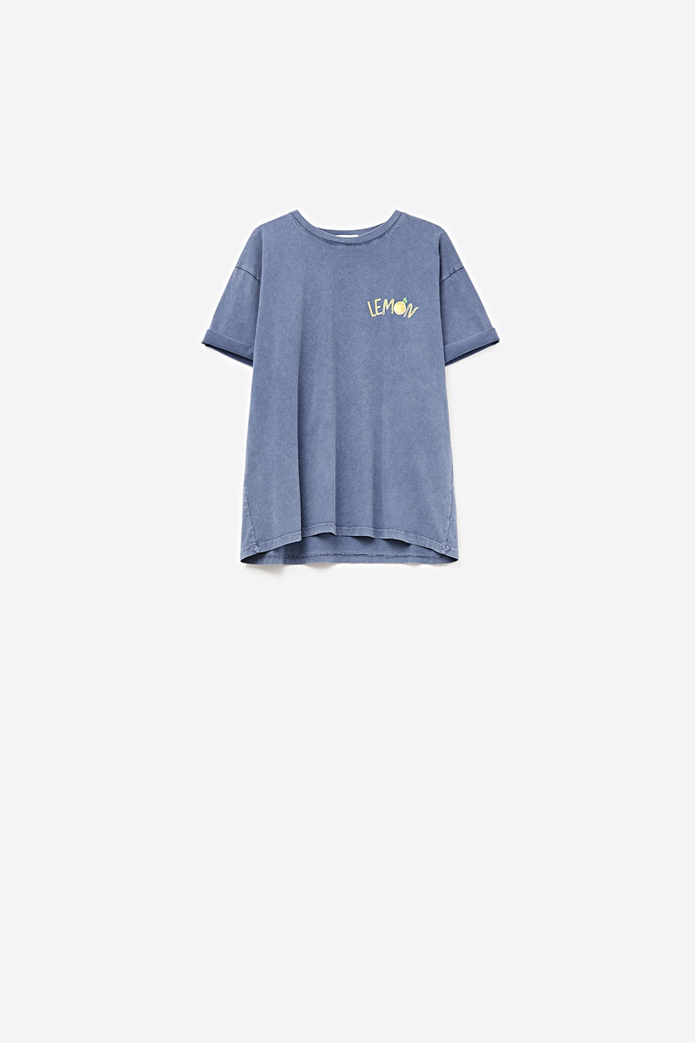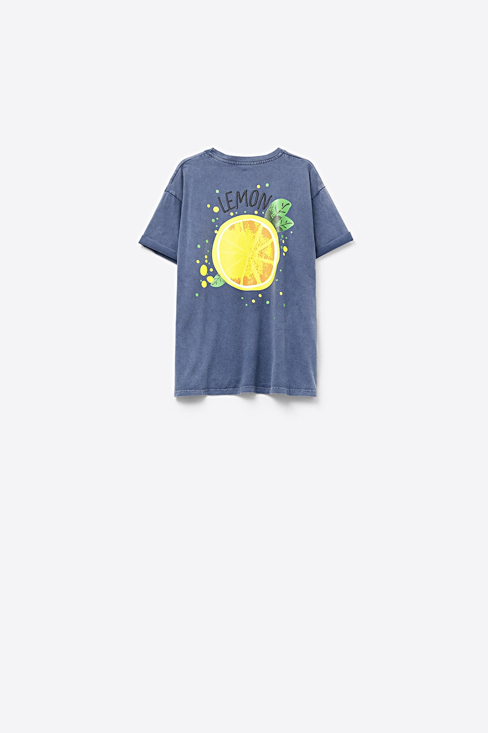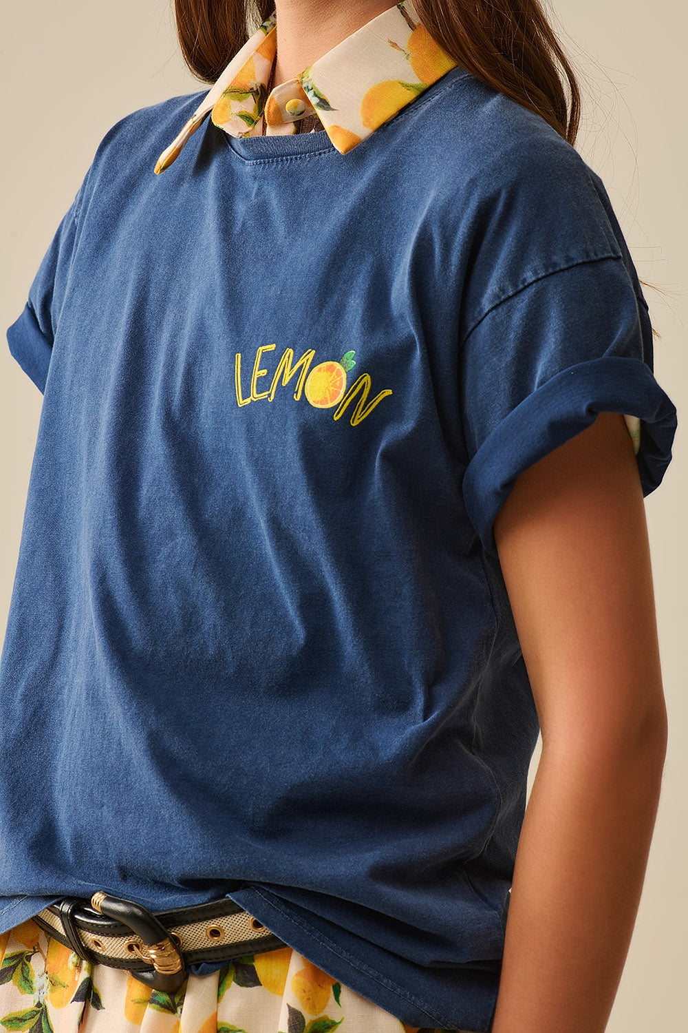 Fabriqué en Italie t-shirt bleu marine avec motif de citron