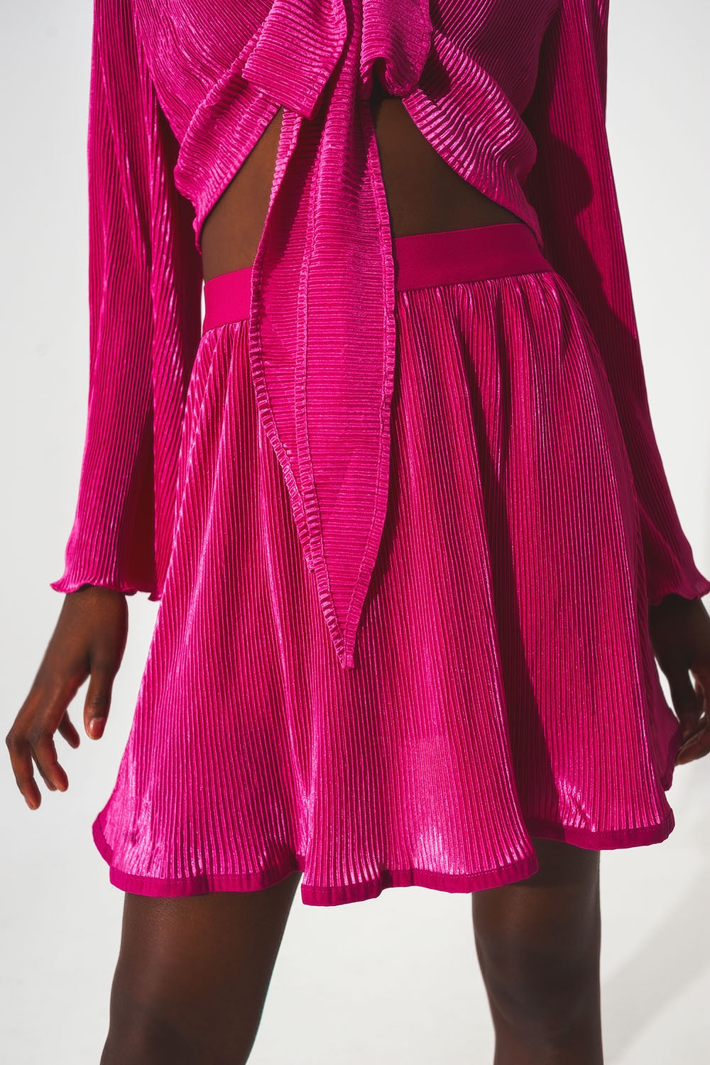 longueur: Longueur Mini. Jupe. Coupe: Coupe décontractée. Style: Style de fête. détail: Design plissé. Tissu: Tissu brillant effet satin . Ceinture: Taille élastique.