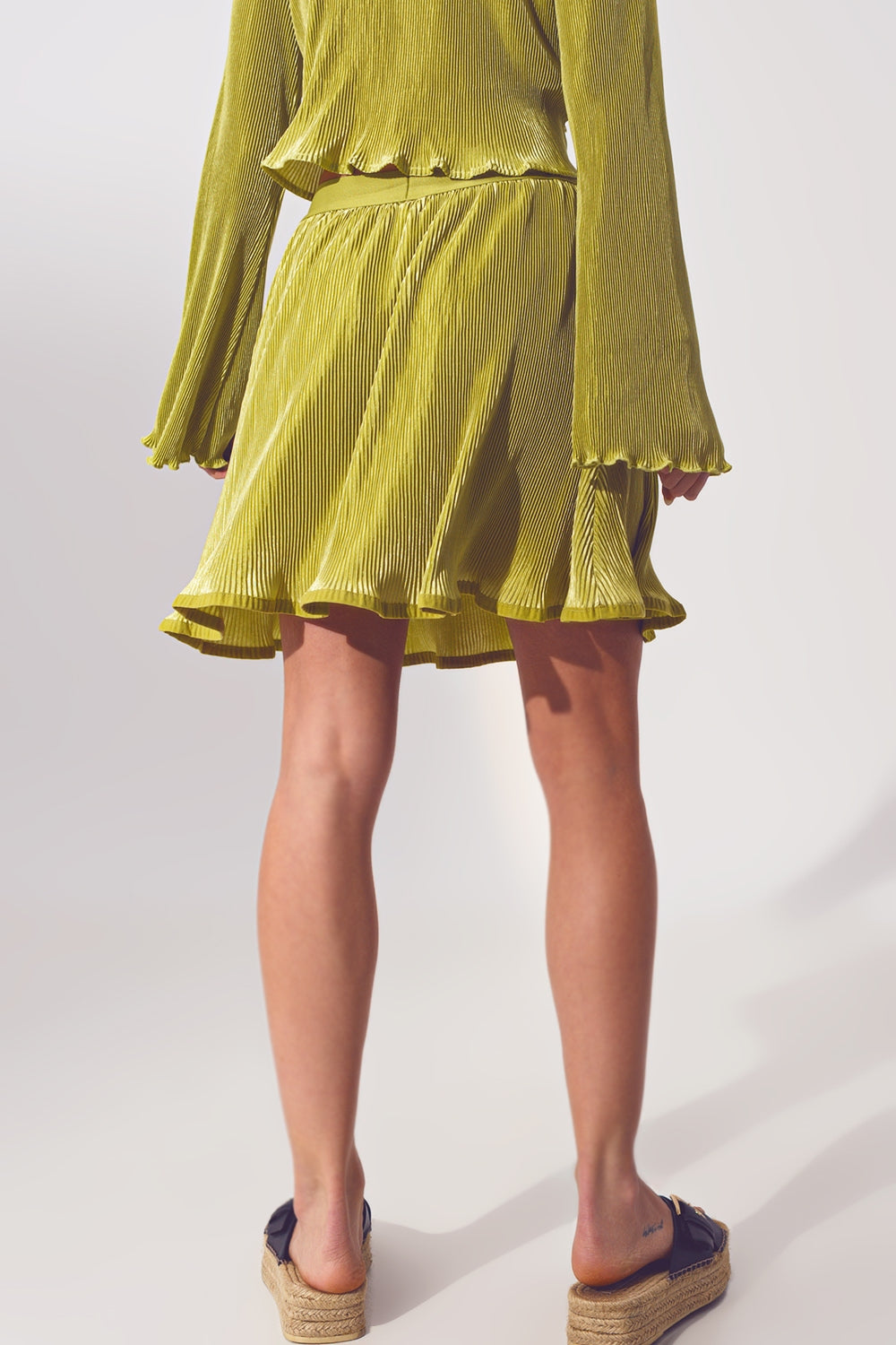 Jupe courte plissée en vert
