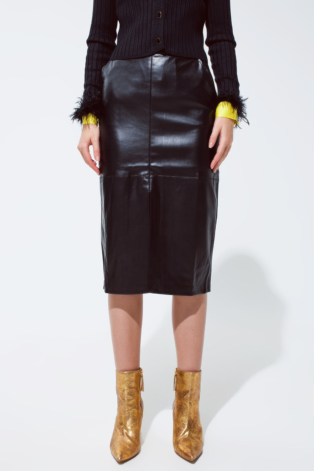 Jupe. Coupe: Coupe Ajustée. Style: Style de fête. Tissu: faux cuir. Poches: Poches sur les côtés. Fermeture : Fermeture éclair au dos. Ceinture: Ceinture non incluse.