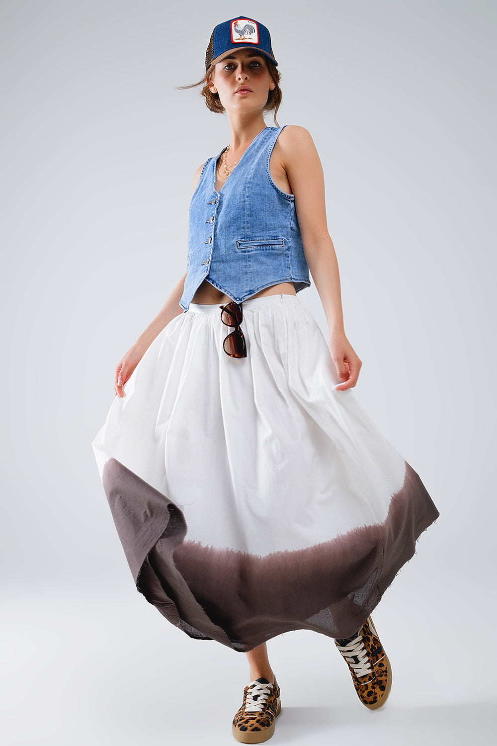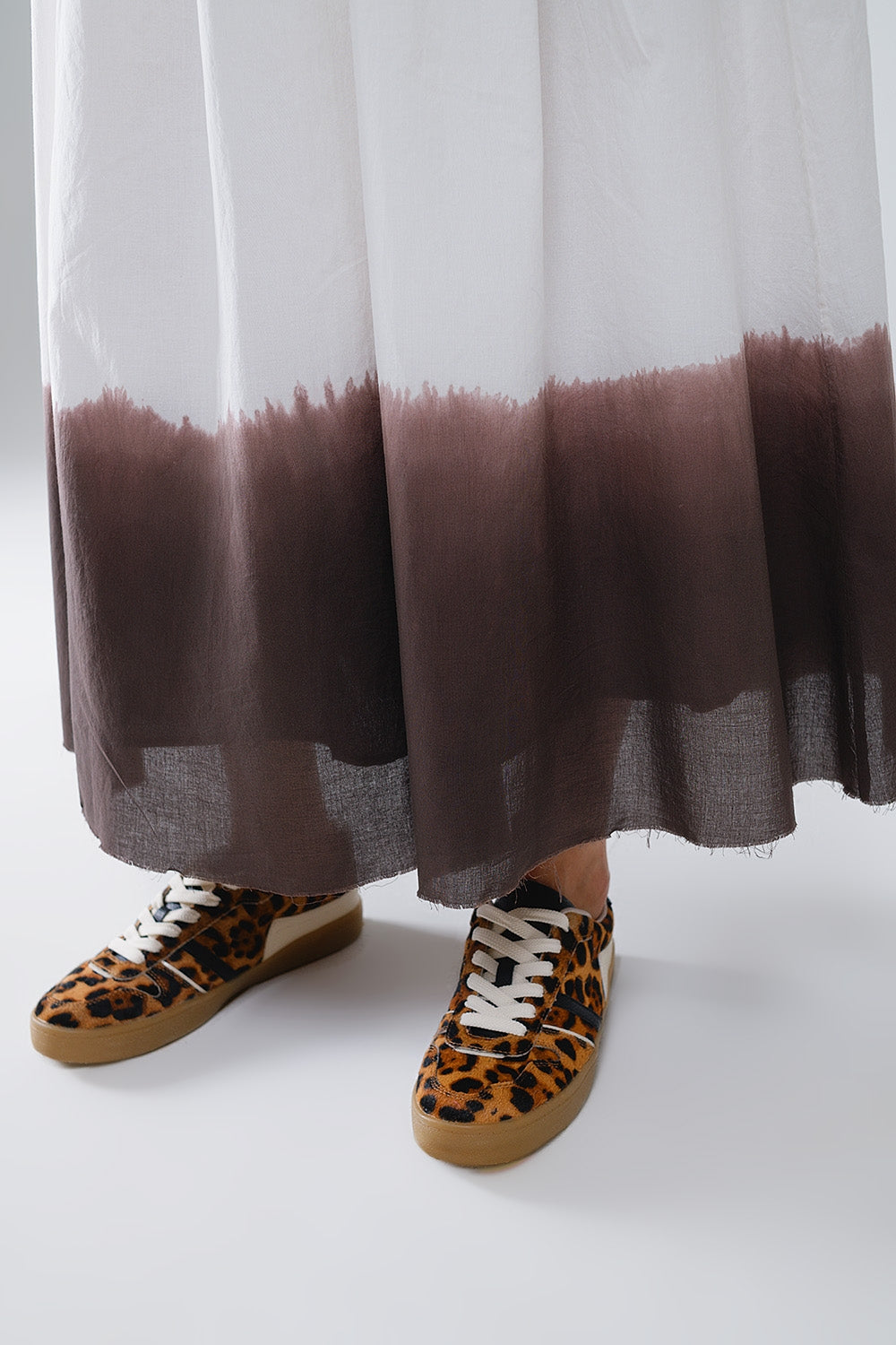 Jupe fluide à taille tombante blanche avec détails ombrés marron