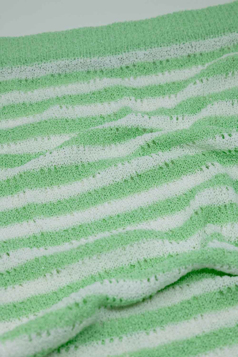 Jupe midi en crochet blanche à rayures vertes et ourlet à franges