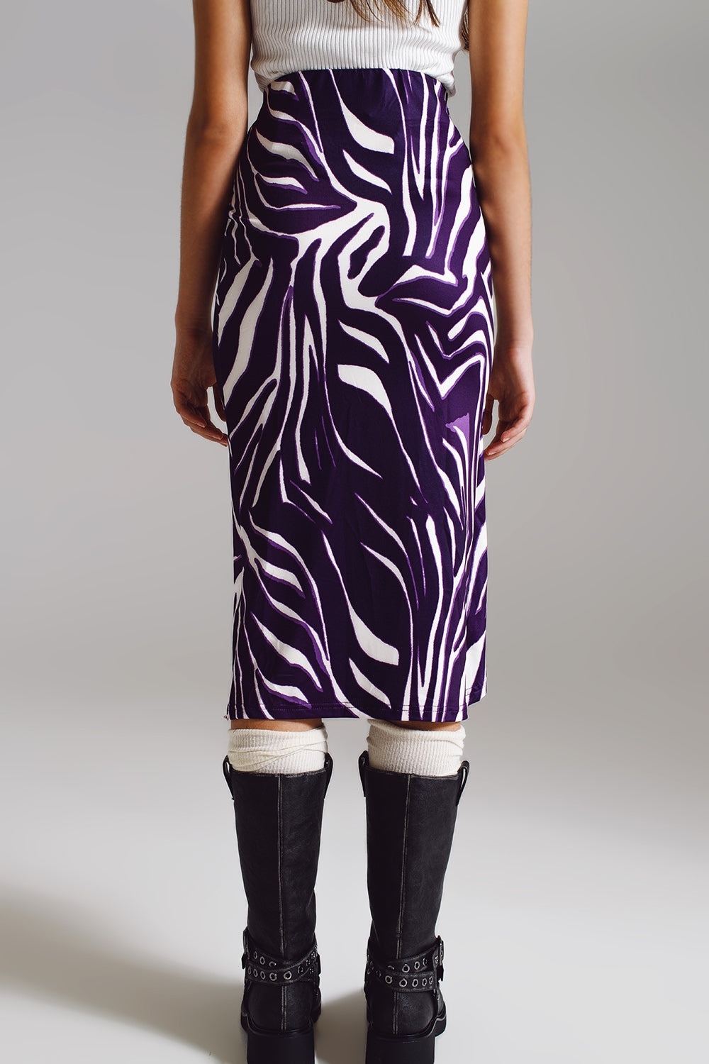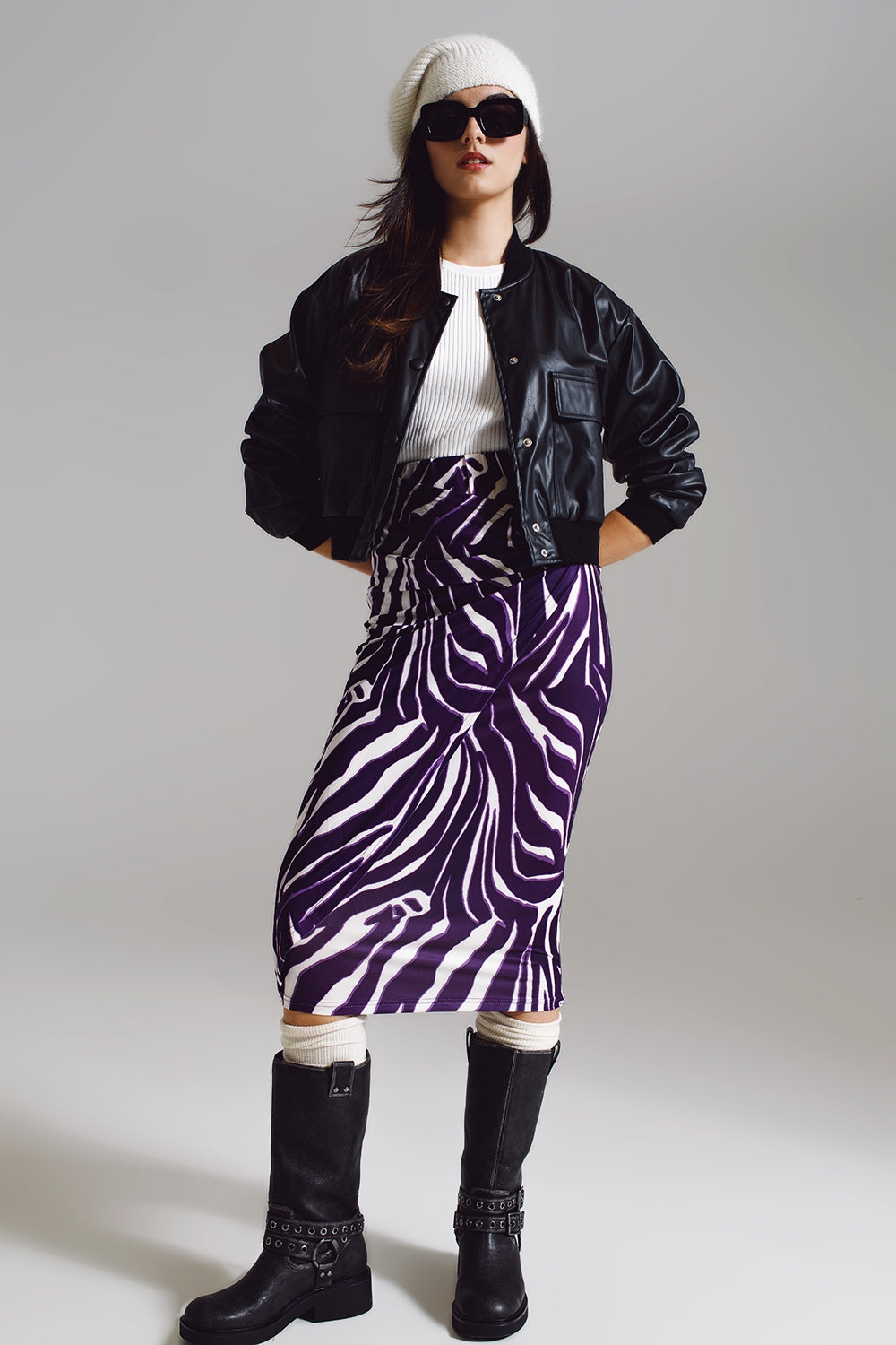Jupe portefeuille avec détail froncé sur le côté avec une impression zèbre Violette et Crème