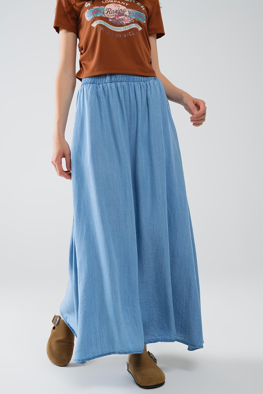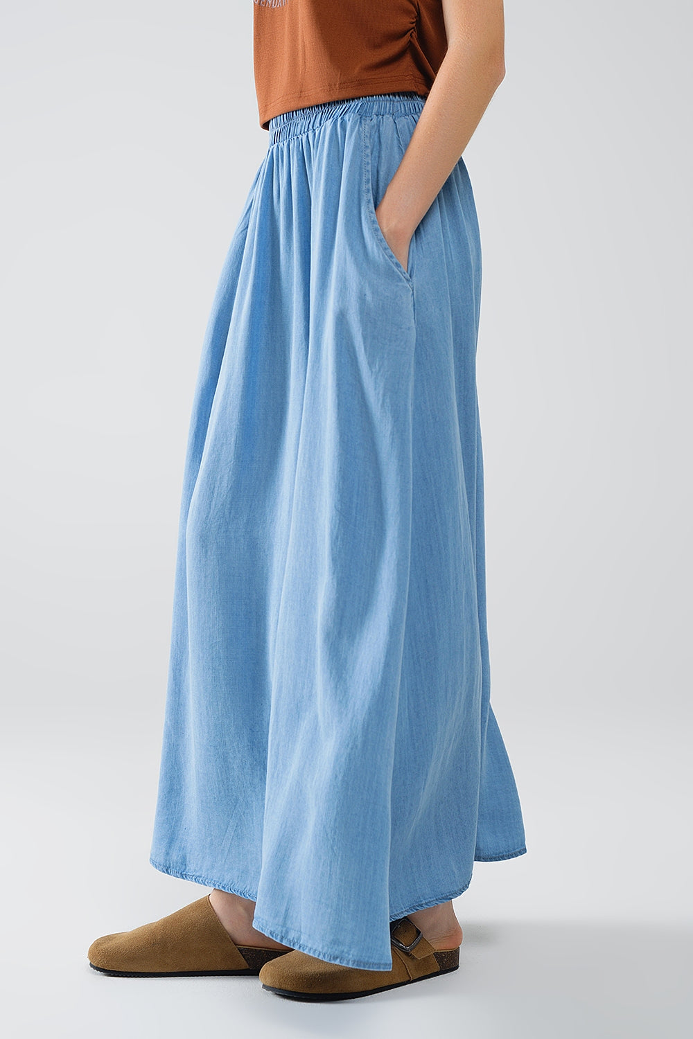 longueur: Longueur maxi. Jupe. Coupe: Taille haute. Style: Style décontracté. Tissu: Tissu à tissage léger . Poches: Poches sur les côtés. Ceinture: Taille élastique.