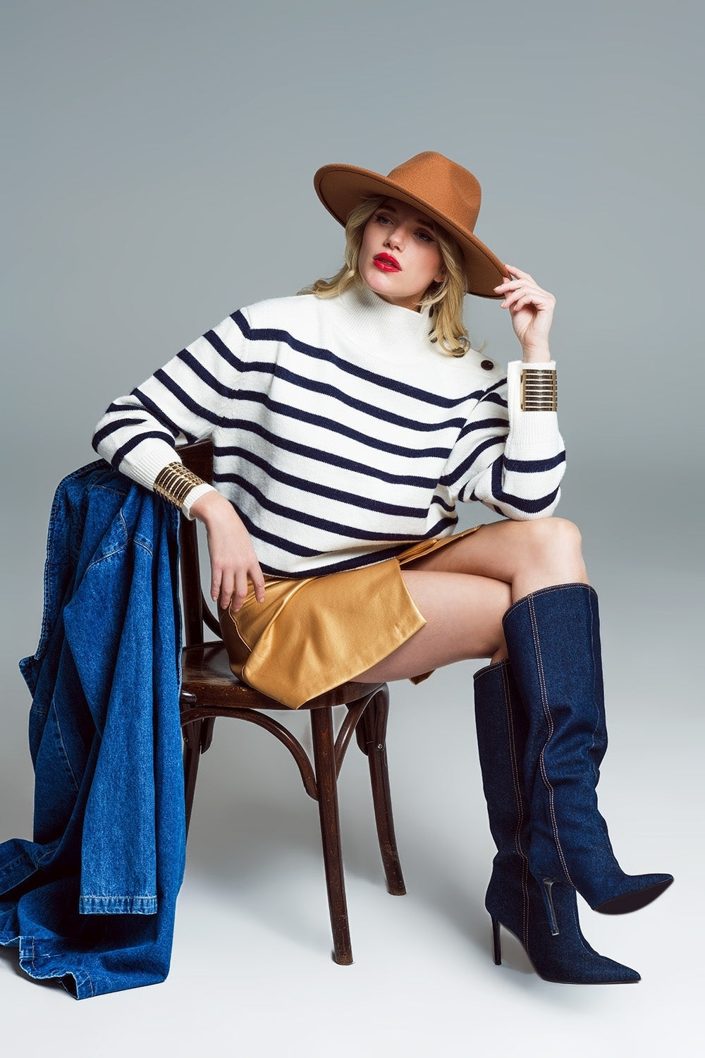 mini-jupe en faux cuir avec nœud sur le côté en or