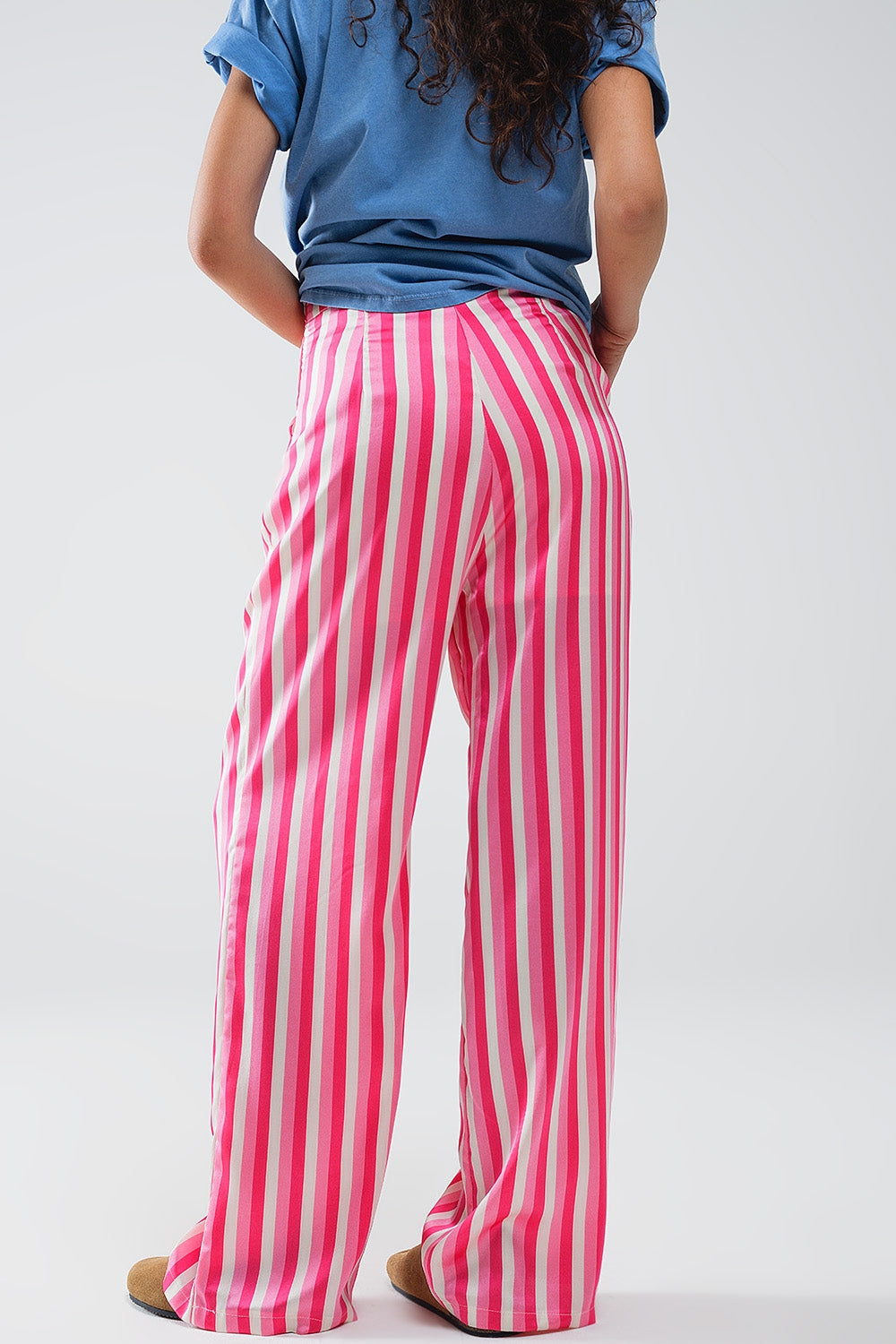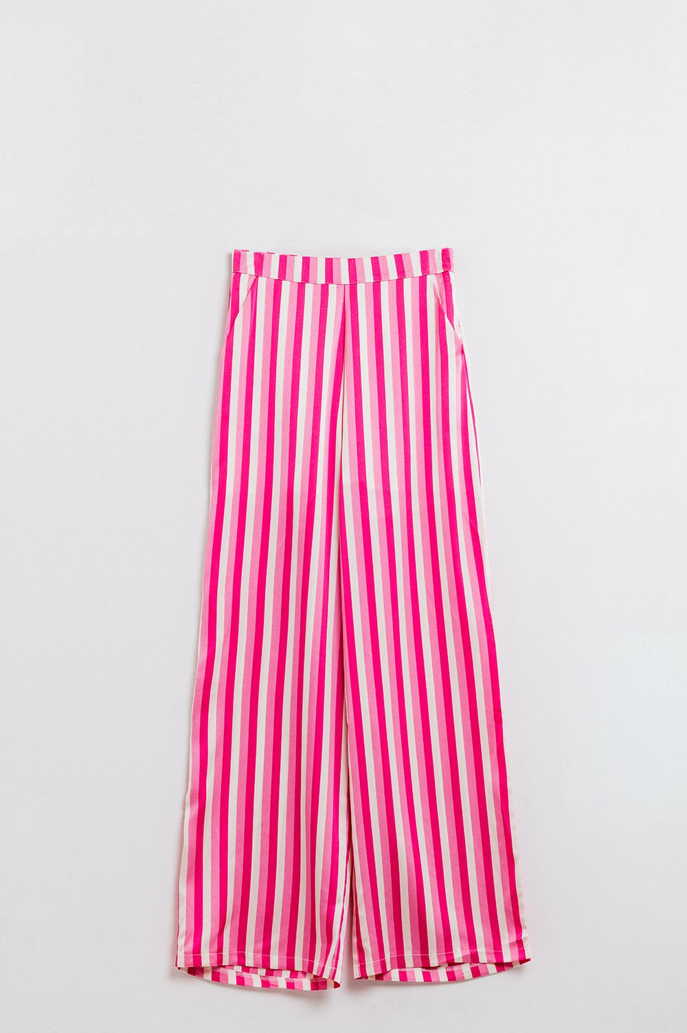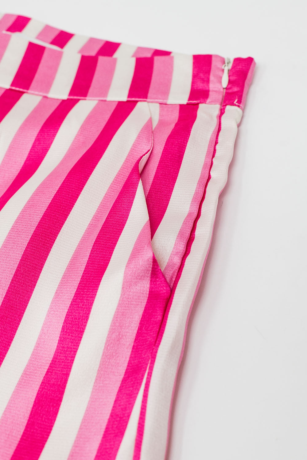 Pantalon droit en satin à rayures verticales rose