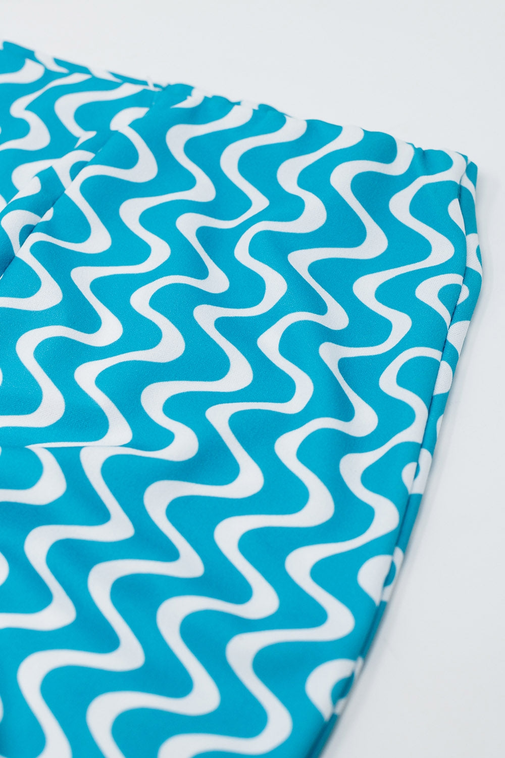 Pantalon évasé à taille haute et imprimé style années 70 bleu
