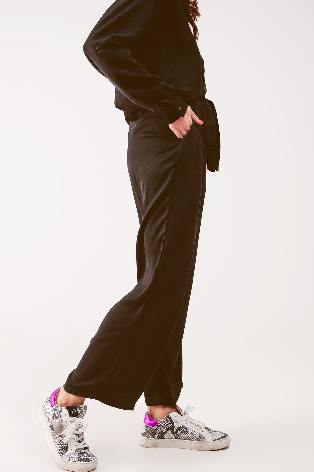 Pantalon. Coupe: Coupe décontractée. Jambe: Large. Style: Style confort. détail: Ceinture du même tissu incluse. Tissu: Tissu brillant effet satin . Poches: Poches sur les côtés. Fermeture : Fermeture par lien au dos. détails du produit: Poches fonctionnelles.