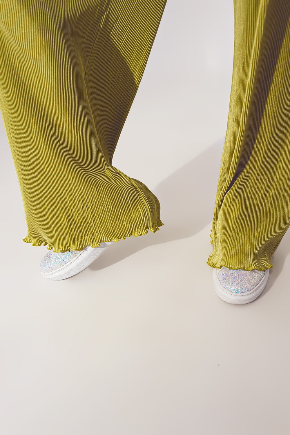 longueur: Longueur maxi. Pantalon. Coupe: Coupe décontractée. Jambe: Large. Style: Style de fête. détail: Design plissé. Tissu: Tissu brillant effet satin . Ceinture: Taille élastique.