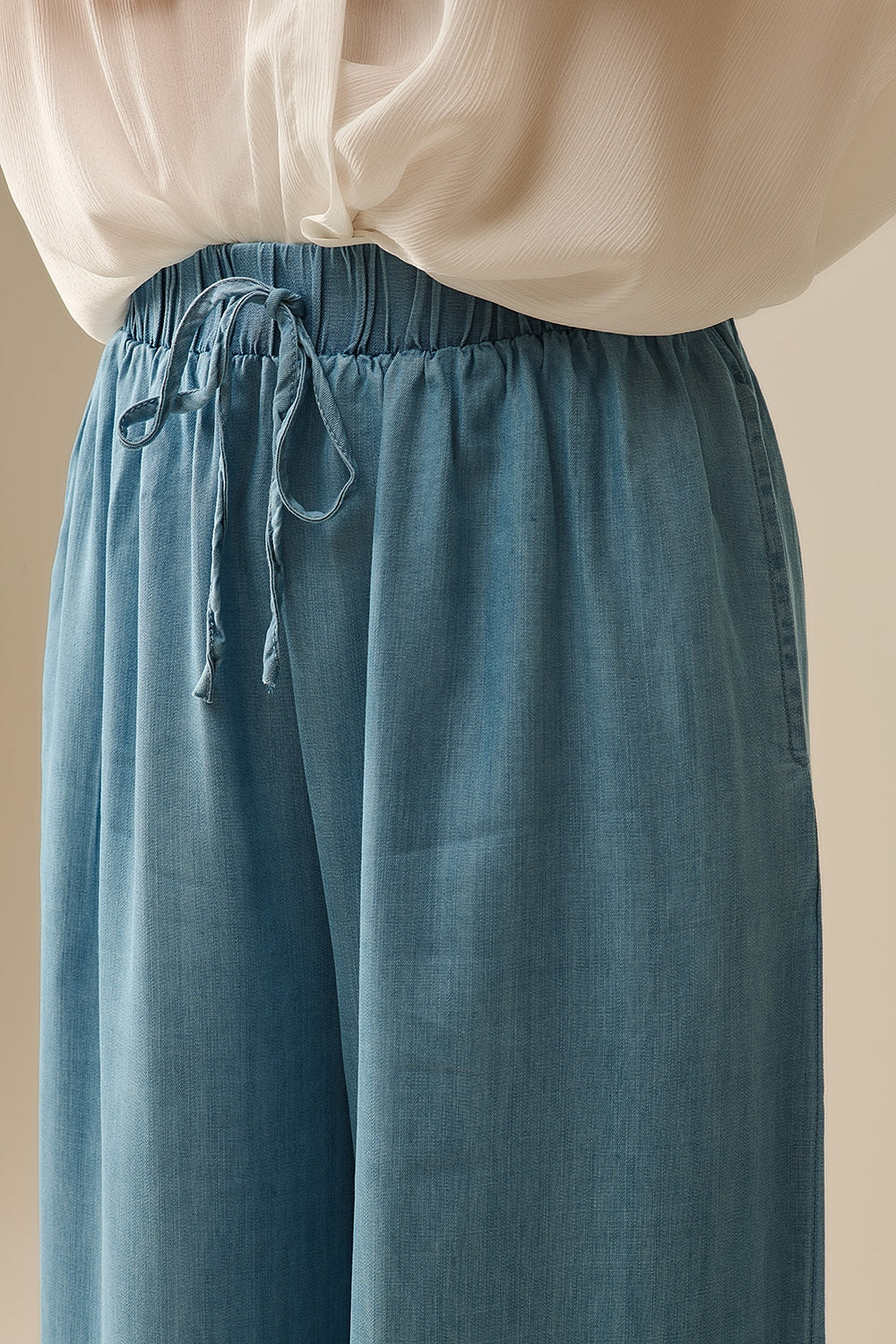 longueur: Longueur maxi. SousCategorie: Pantalon. Coupent: Coupe décontractée. Jambe: Large. Style: Style de tous les jours. Tissu: Tissu à tissage léger . Ceinture: Taille élastique avec cordon de serrage. runs true to size. S.