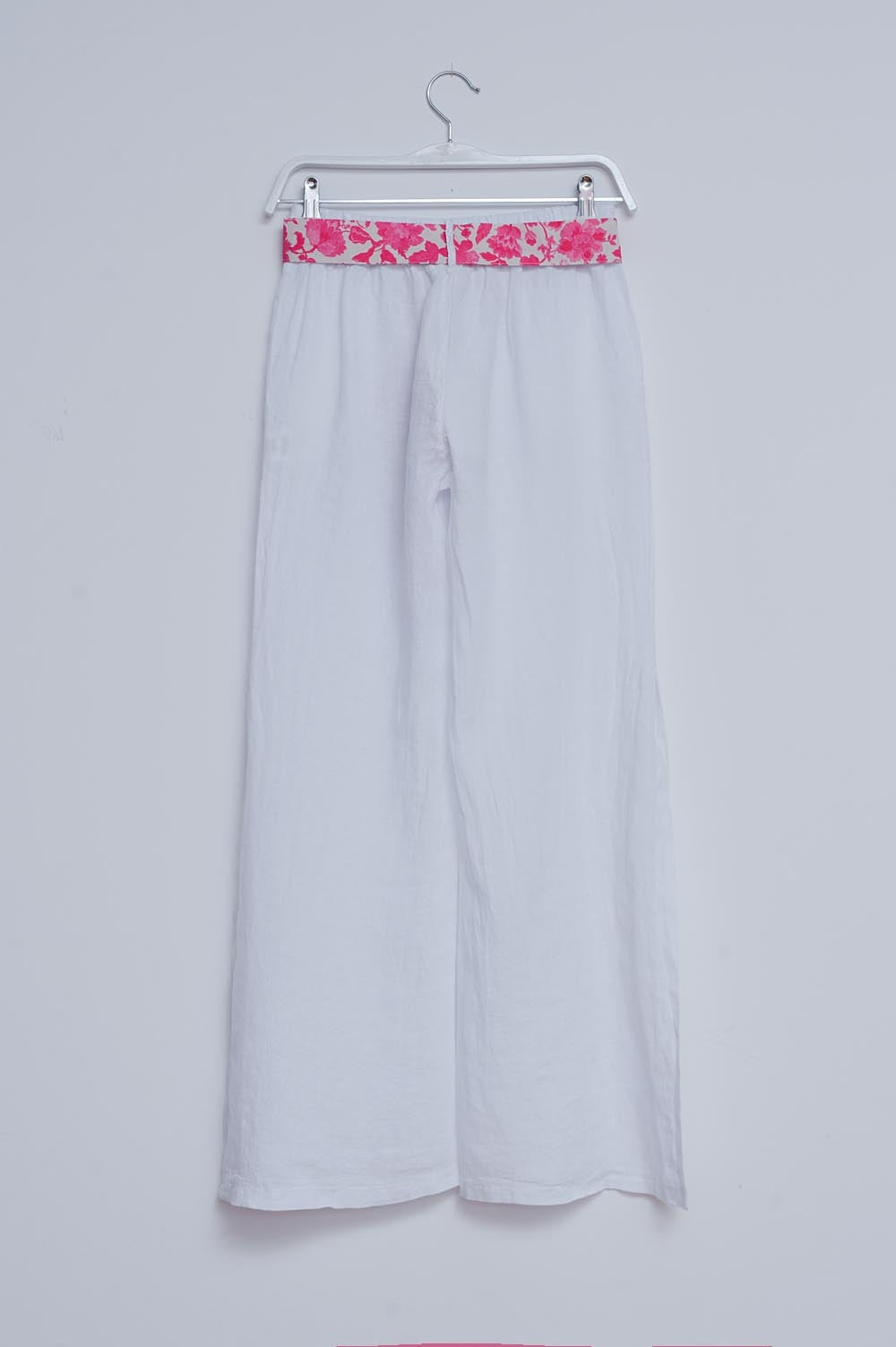 Pantalon. Coupe: Coupe décontractée. Jambe: Large. Style: Style confort. Tissu: Lin. Poches: Poches sur les côtés. Fermeture : Fermeture zippée. Bord : Fentes latérales. détails du produit: Poches fonctionnelles. Ceinture: Ceinture à nouer.