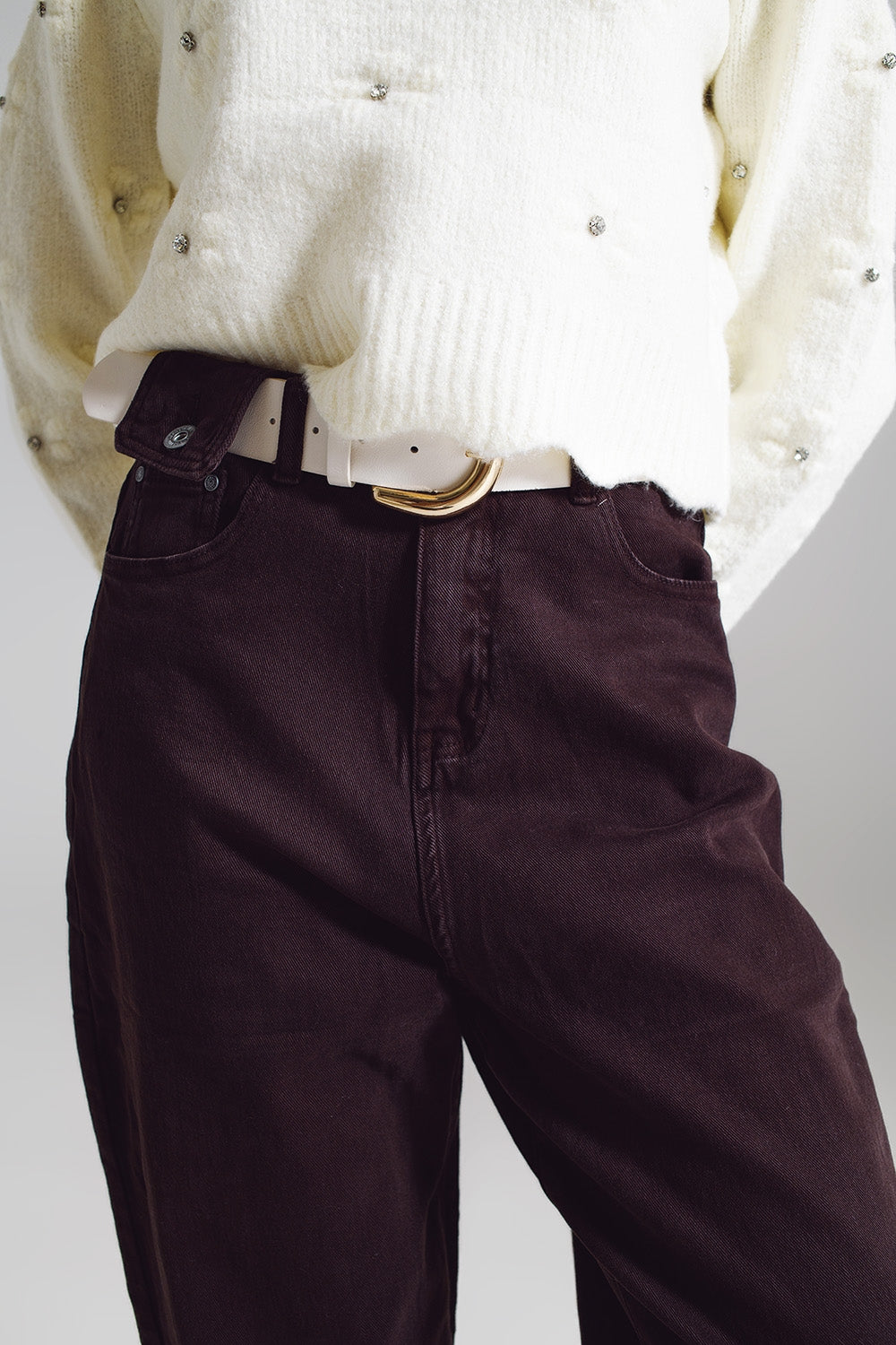 Pantalon marron décontracté avec des détails de poches à la taille