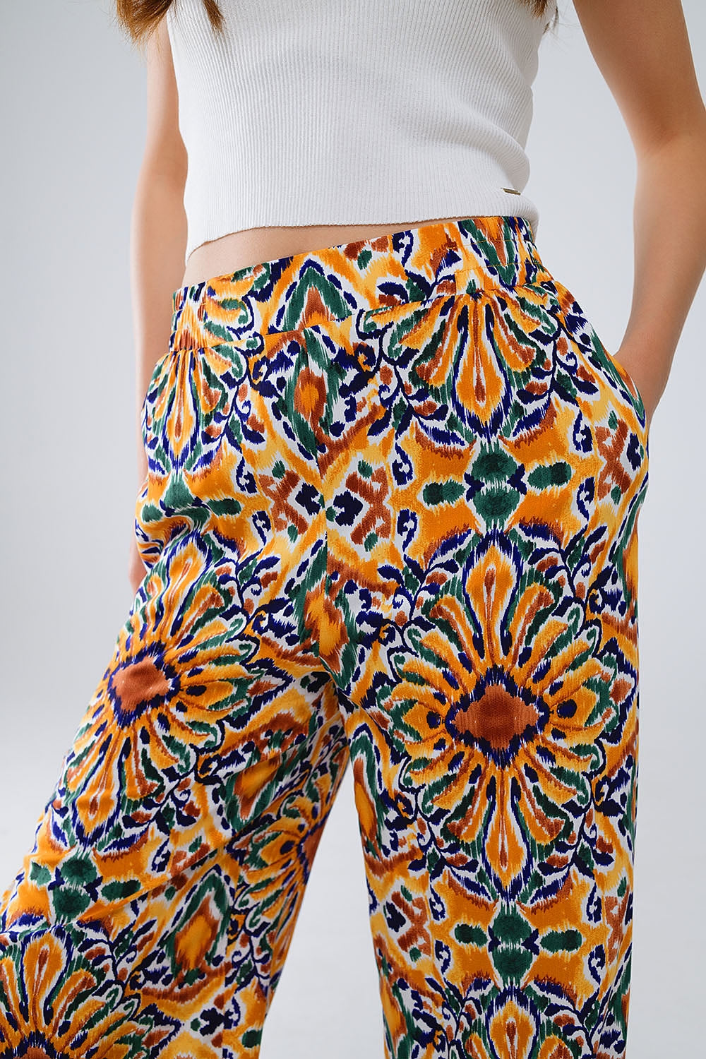 Pantalon multicolore avec impression de fleurs en orange et bleu