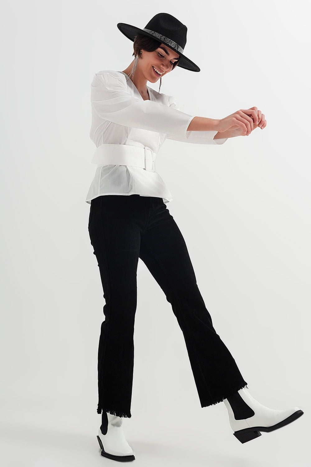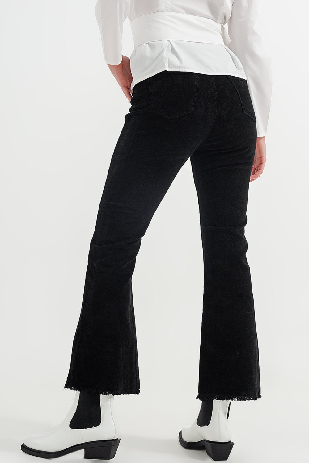 Pantalon. Coupe: Coupe Ajustée. Jambe: Coupe évasée. Style: Style décontracté. Type de Jean: Style Basique. détail: Passants pour ceinture. Tissu: Velours côtelé. Bord : Bouts effilochés. détails du produit: Poches fonctionnelles.