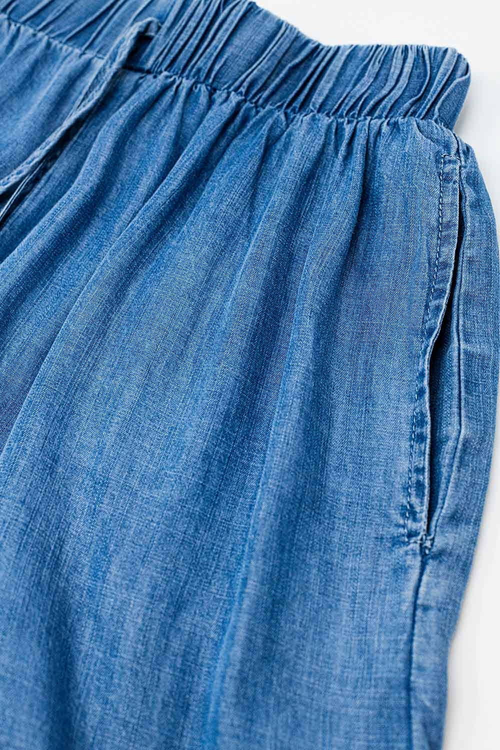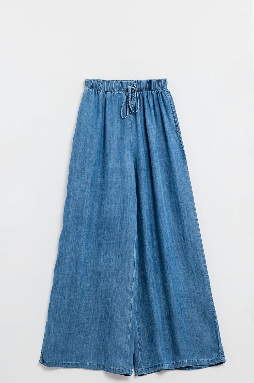 Pantalon. Coupe: Coupe oversize. Jambe: Large. Style: Style confort. Tissu: Tissu à tissage léger . Poches: Poches sur les côtés. Ceinture: Taille élastique avec cordon de serrage.