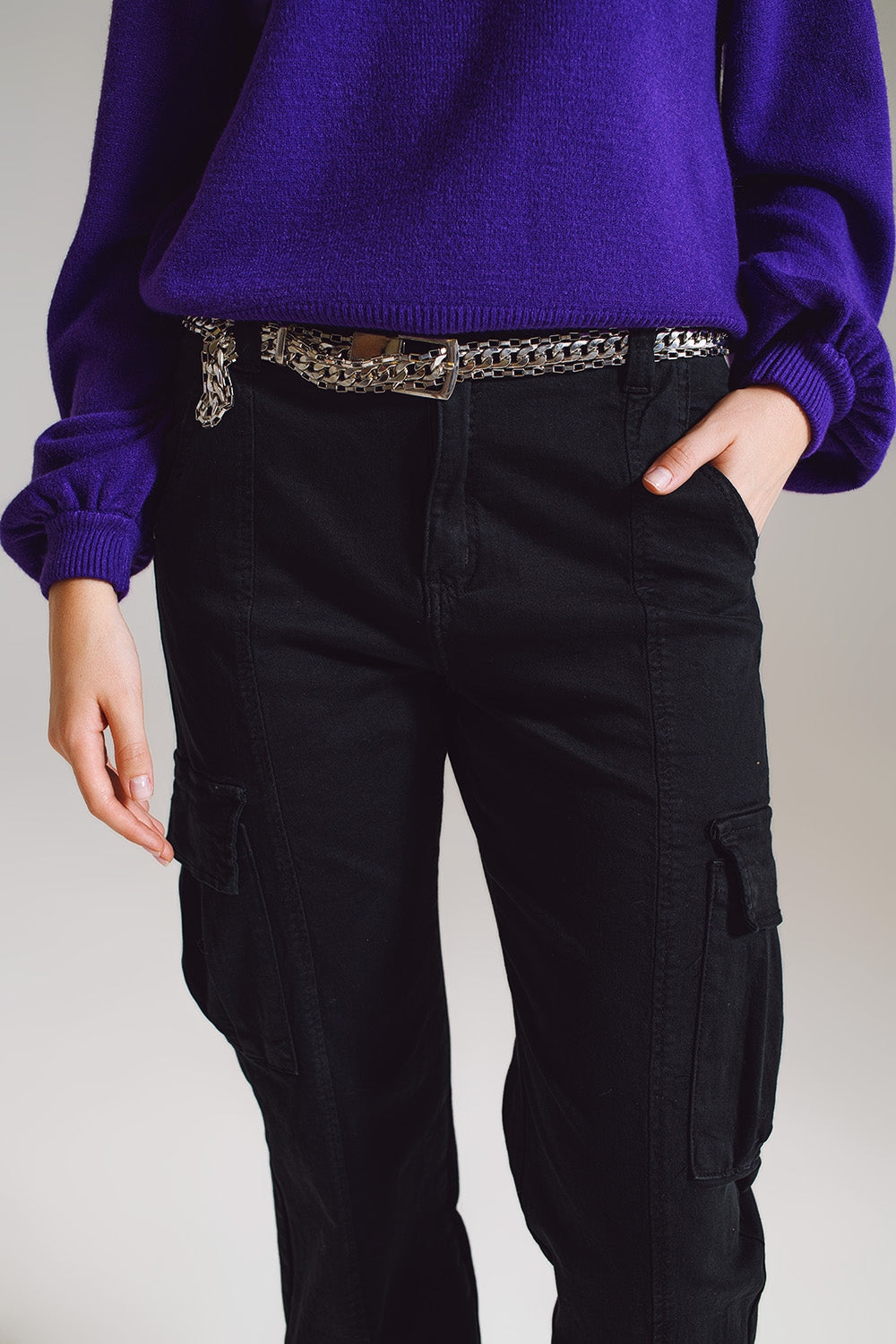 longueur: Longueur chevilles. Pantalon. Coupe: Cargo. Jambe: coupe droite. Style: Style de tous les jours. Tissu: Denim stretch. Poches: Poches sur les côtés. Fermeture : Fermeture zippée. détails du produit: Poches fonctionnelles.