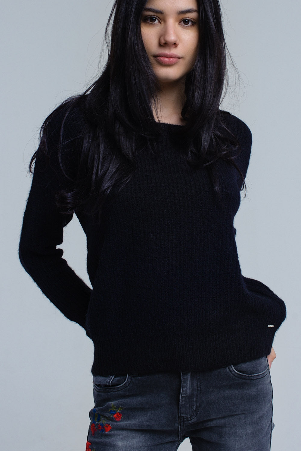 Pull en maille noir avec fermeture à nouer