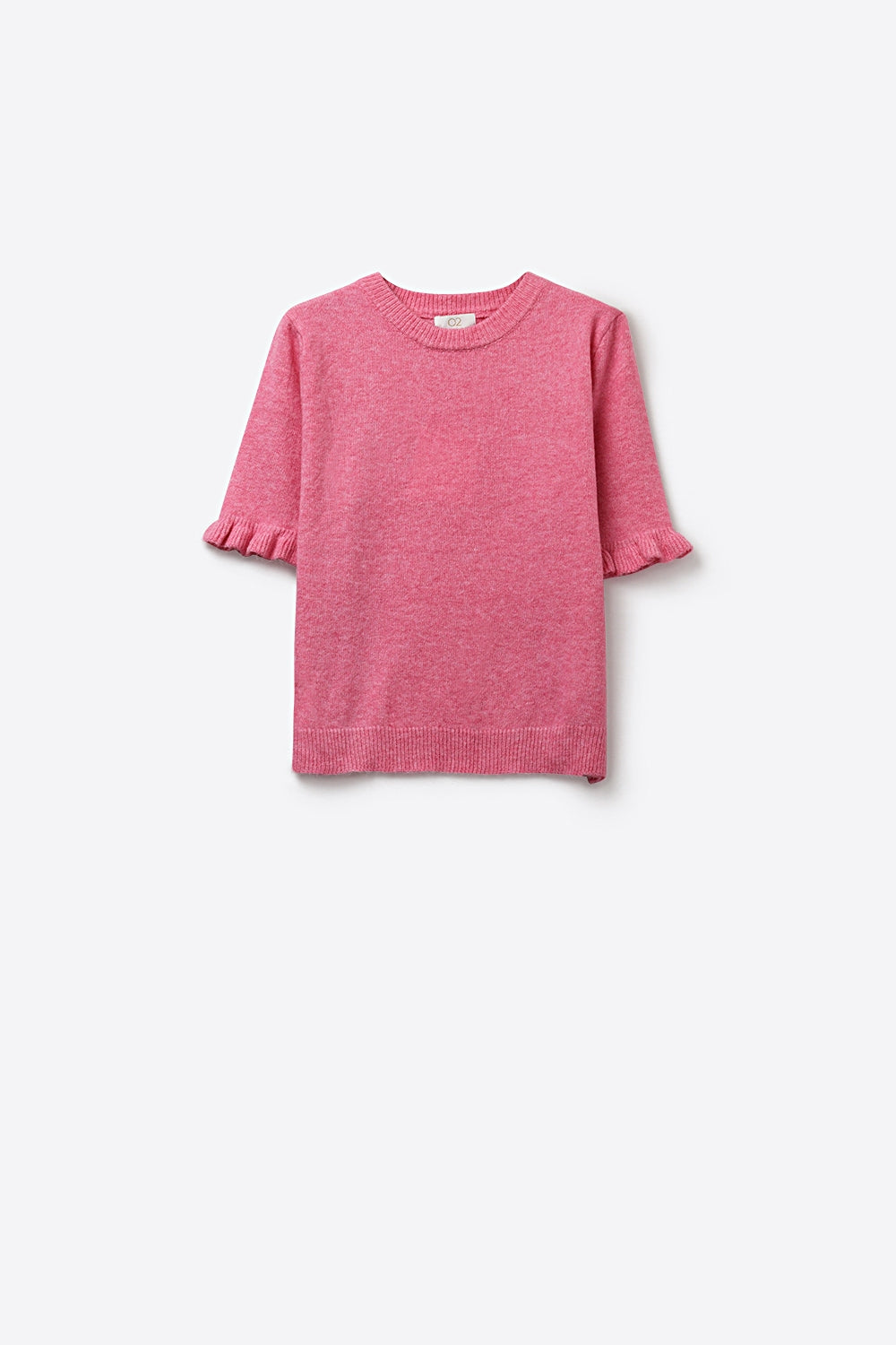 Pull en tricot doux et moelleux rose avec manches à volants