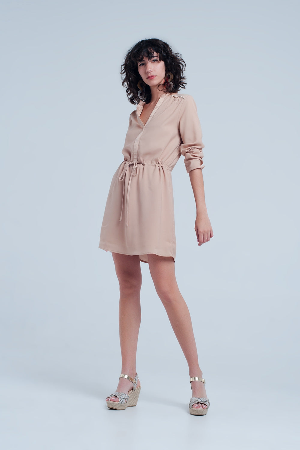 Robe Beige chemise courte à nouer à la taille