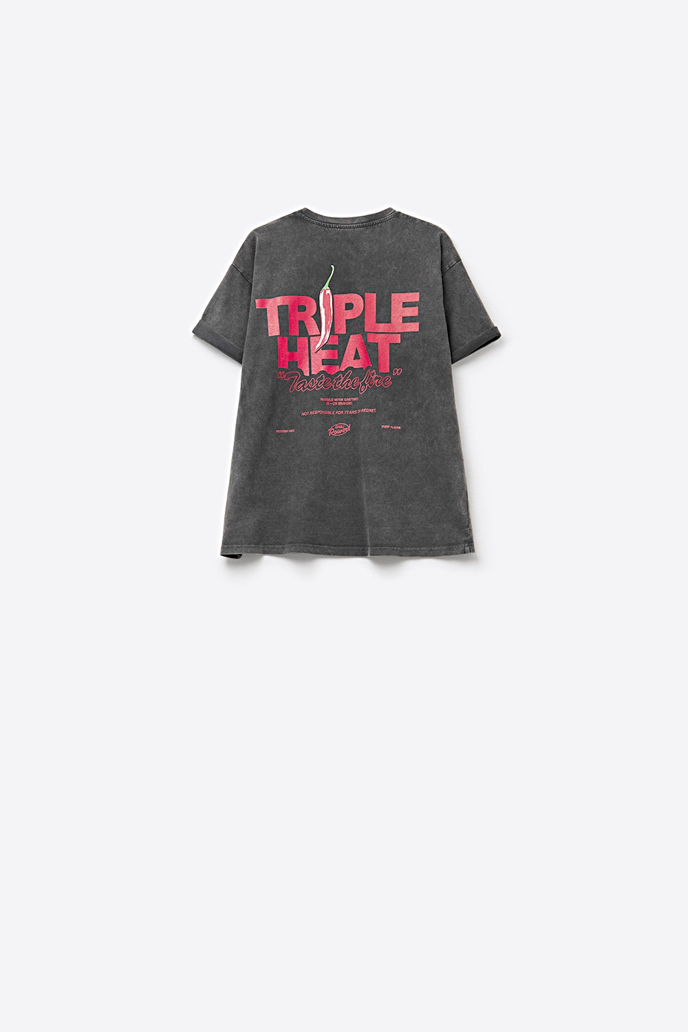 tissu noir lavé T-shirt à manches courtes TRIPLE HEAT LOGO