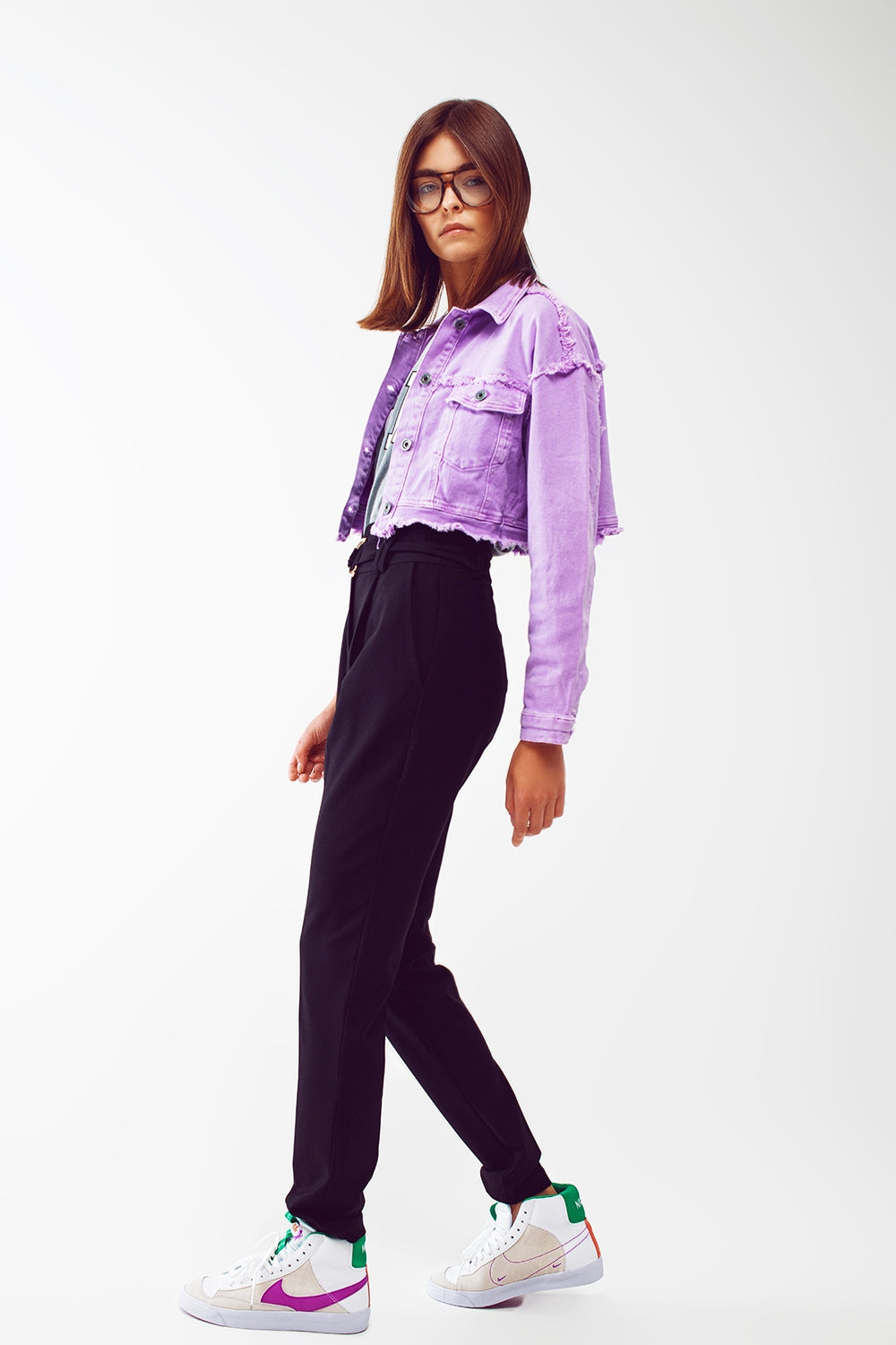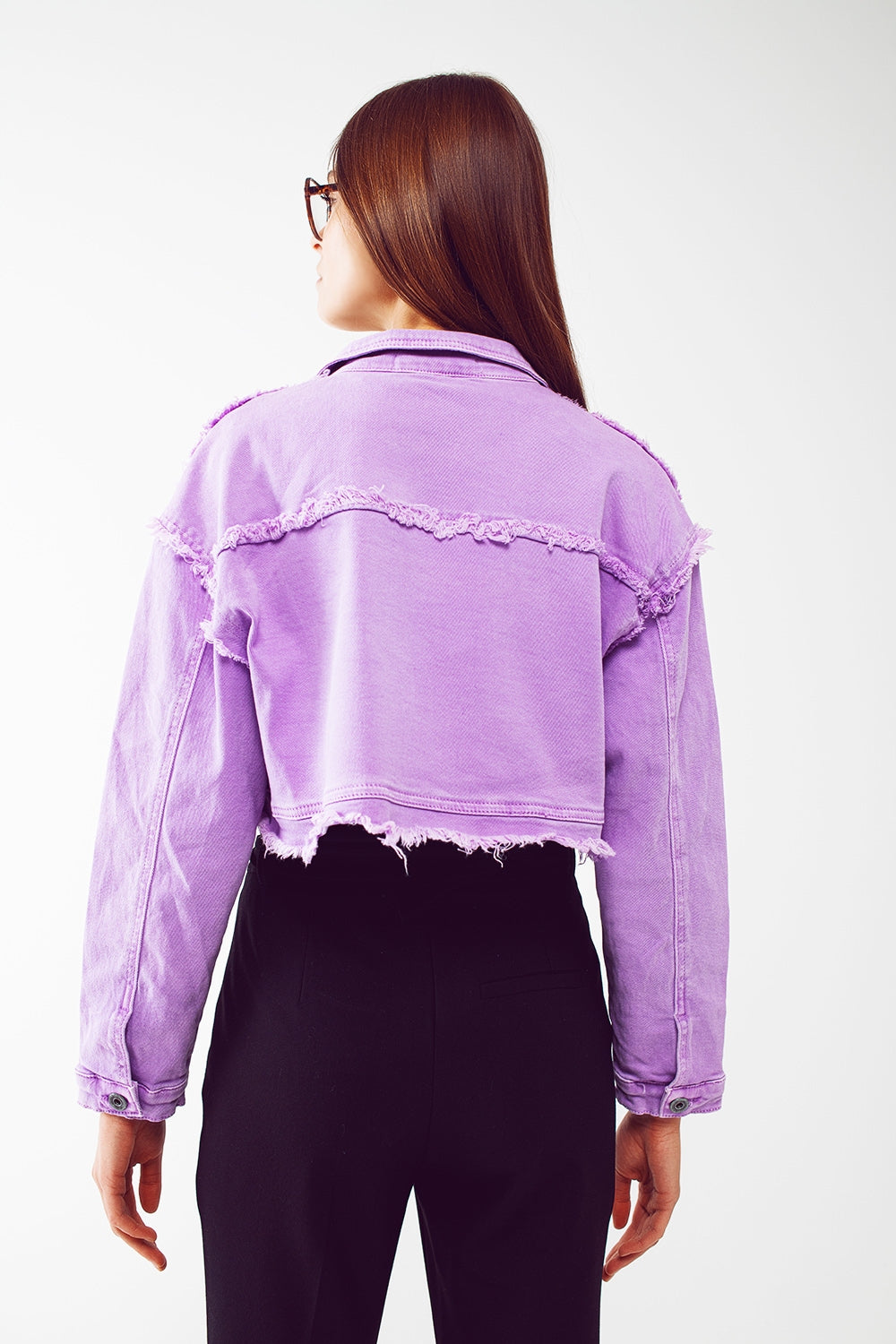 Veste en jean courte style trucker pourpre