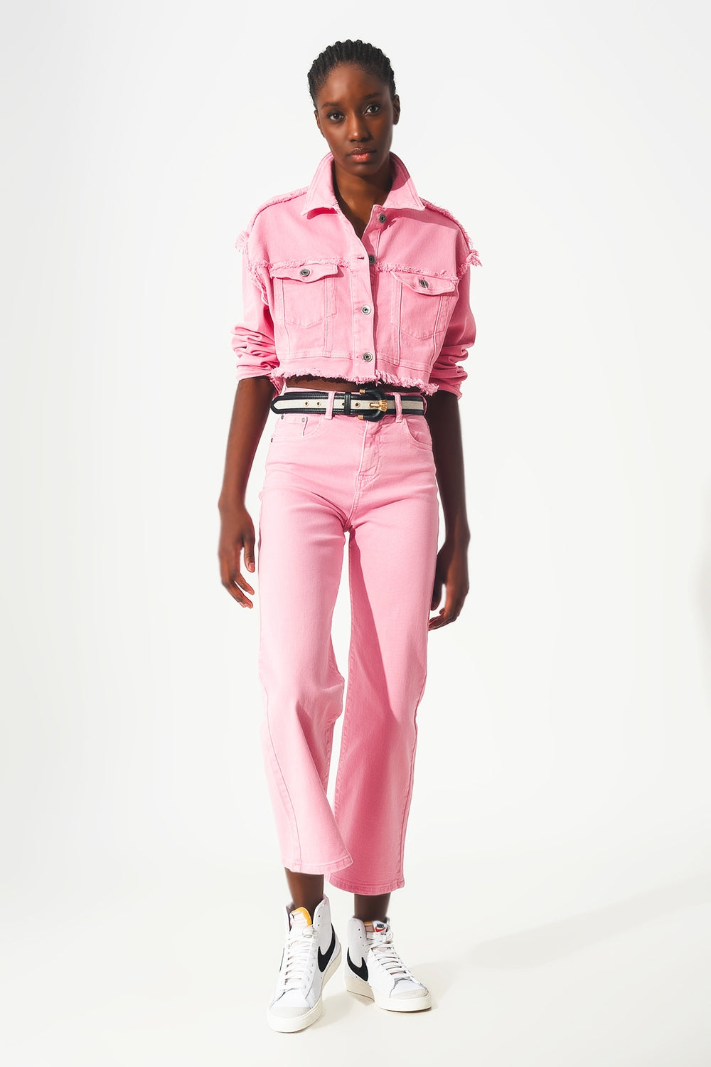 longueur: longueur pantacourt. Veste en jean. Encolure col large. Manches: Manches longues. Style: Style décontracté. Type de Jean: Effet vieilli. Tissu: Denim stretch. Poches: Poches sur le devant. Fermeture : Patte de boutonnage. Bord : Bouts effilochés. détails du produit: Poches fonctionnelles.